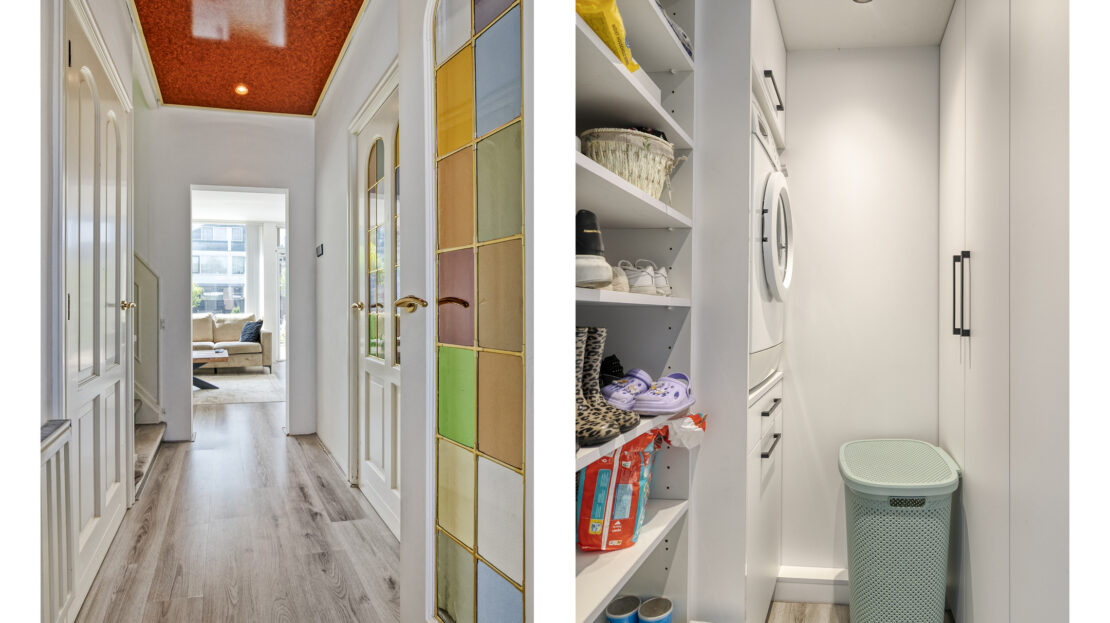 Op deze verdieping bevindt zich tevens een aparte ruimte met aansluiting voor wasmachine en droger, én extra kastruimte.